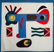Fond toile africaine bleue / vieilles dentelles et soie blanche