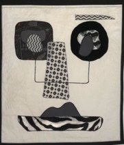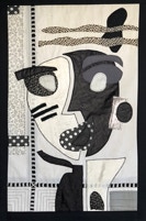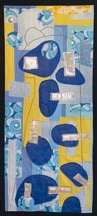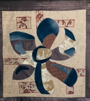 Fond toile africaine bleue / vieilles dentelles et soie blanche