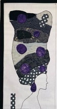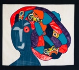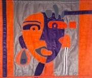 Tête orange et violette sur fond taupe