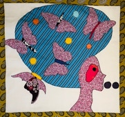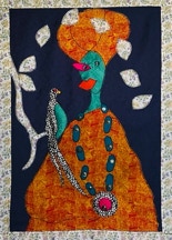 Femme noire tresses blanches coton et poisson rouge